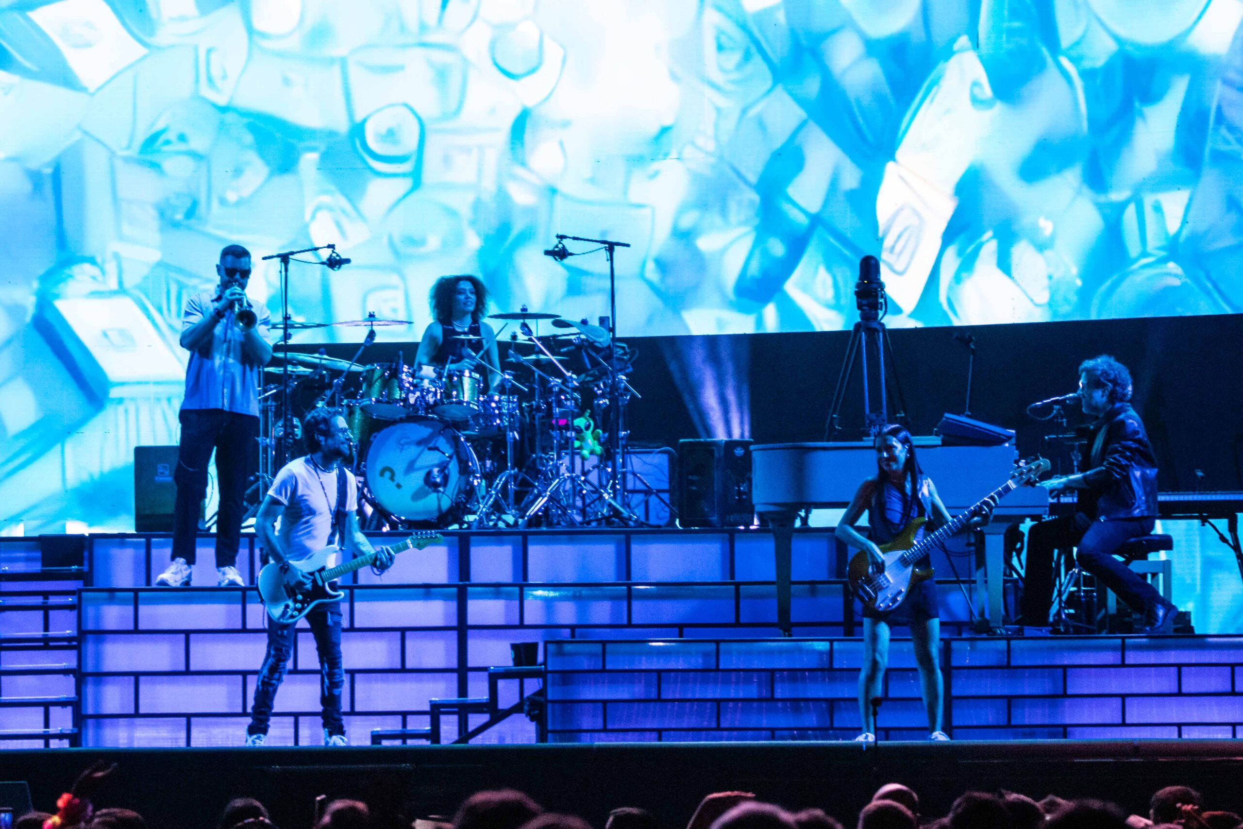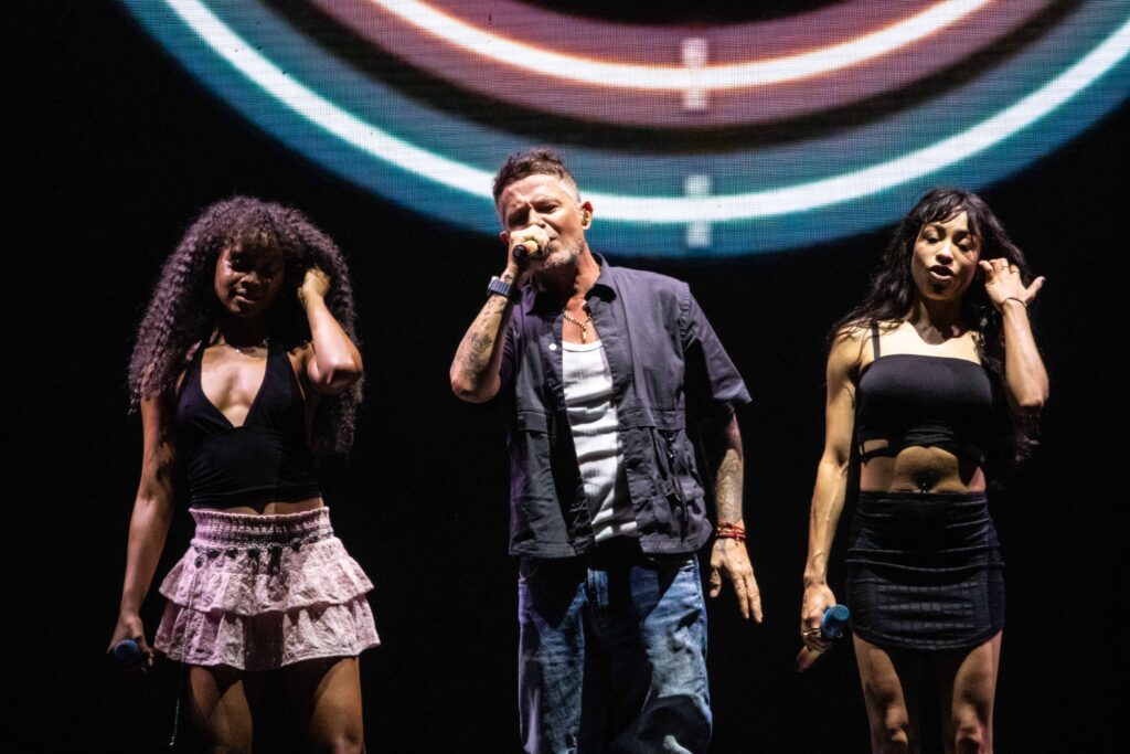 Otro de los puntos altos del espectáculo fue la calidad de los músicos que acompañan al artista. La banda demostró una precisión y un nivel interpretativo sobresalientes, aportando potencia y matices a cada canción. En particular se destacó la presencia femenina dentro del grupo: varias de las integrantes no solo aportaron sus voces en los coros, sino que también se lucieron en instrumentos como la batería, la trompeta y el bajo, demostrando versatilidad y un enorme talento sobre el escenario.